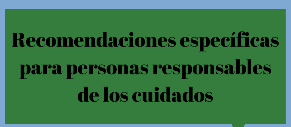 - La personas responsable de los cuidados será considerada contacto estrecho y deberá realizar cuarentena domiciliaria durante 14 días.