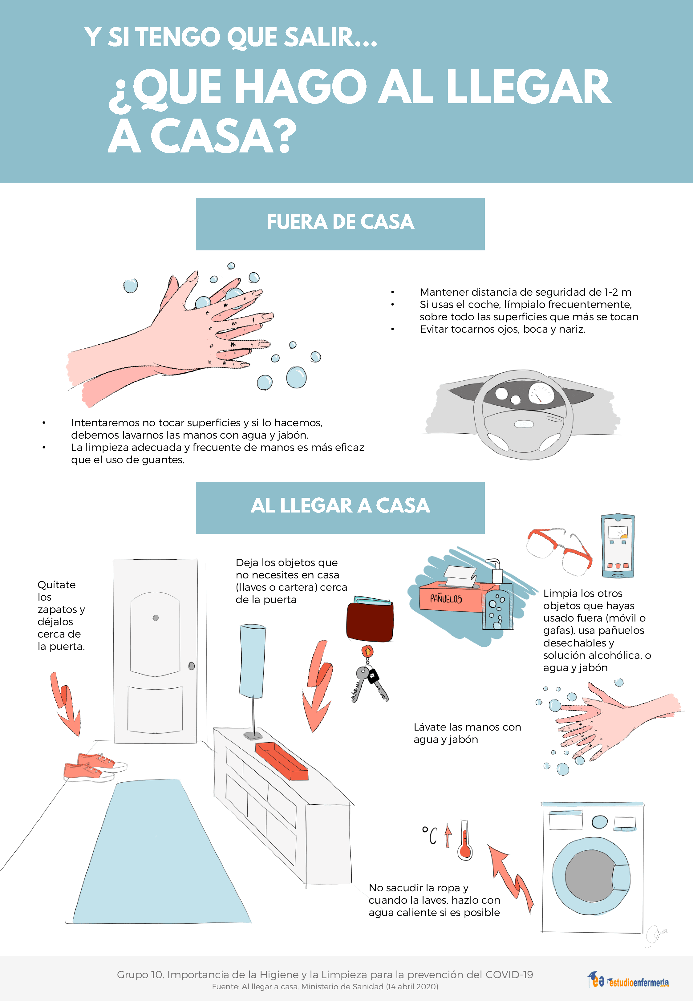 Estas recomendaciones han sido proporcionadas por el Ministerio de Sanidad en el documento “Al llegar a casa” publicado el 14 de abril de 2020.
